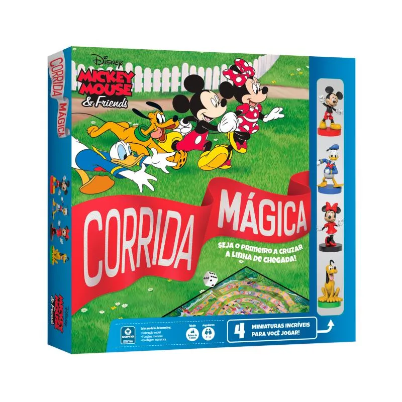 Prepare-se para uma aventura cheia de diversão com o Jogo Corrida Mágica do Mickey! As crianças vão se divertir ajudando o Mickey e seus amigos a percorrer o caminho do tabuleiro até a linha de chegada. É só jogar o dado, avançar as casas e torcer para ser o primeiro a completar a corrida!